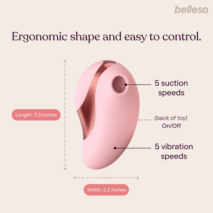 AirVibe is a labor of love and a feat in pleasure product engineering that completely reinvents the sex toy. AirVibe is the fusion of Bellesa’s best-in-class clit and g spot vibrator technology and Bellesa’s Cinetic Suction™ 2.0 Technology. AirVibe’s Pleasure Jets utilize our strongest, purest and quietest negative pressure suction waves ever. While on the other end, AirVibe incorporates Aurora’s g spot targeting technology. Suction speeds: 5 Vibration speeds: 5 Length: 3.1” Width: 3.4” Insertable length: 3.7” Insertable width: 1.2” Insertable girth: 3.9” Weight: 157g Rechargeable. Waterproof.